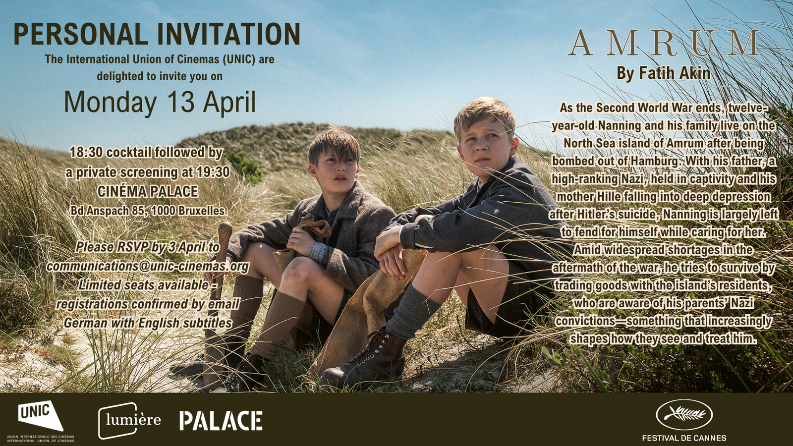 The best way to share our passion for the big screen is to let EU policy-makers experience cinema-going first hand, which is why UNIC - in collaboration with major European film companies and partners - has organised exclusive premieres of outstanding European films, coupled with policy debates and presentations by film industry professionals. UNIC is on the constant lookout for upcoming European cinema success stories to be showcased in the heart of Europe. Please find below a list of our previous screenings.